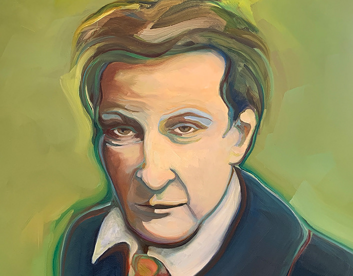Various portraits including paintings from 4 series: 1) The Nightshades; 2) Gone, acrylic paintings of those who have passed; 3) Small-mouthed People, and 4) Juxtapositions, historical figures with a humorous twist. Juxtapositions originals are 40x30 acrylic, prints are available.